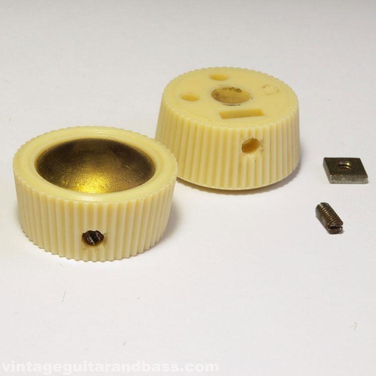 As fitted to the the SB1, SB2, initial versions of the Stroller, Shadow, Duotone, and potentially other models. In use as late as early 1963. Diameter (at widest point) 24.6mm, height 12.5mm. Grub screw, slotted head, 2.7mm x 6.1mm.
