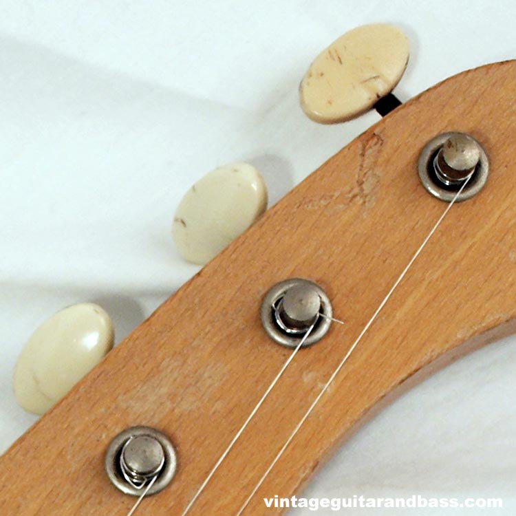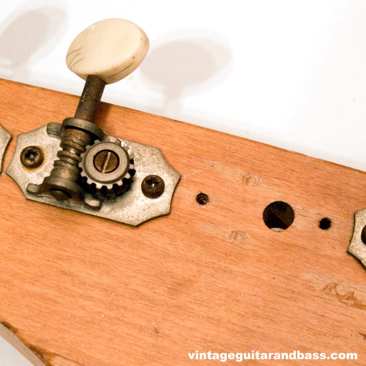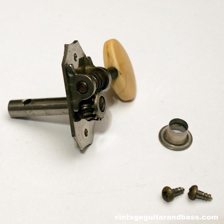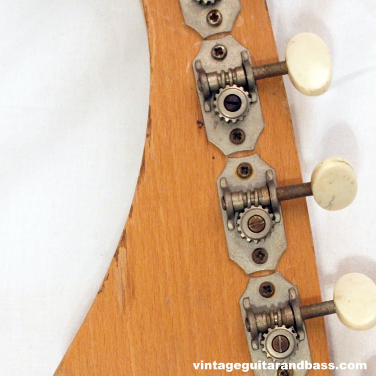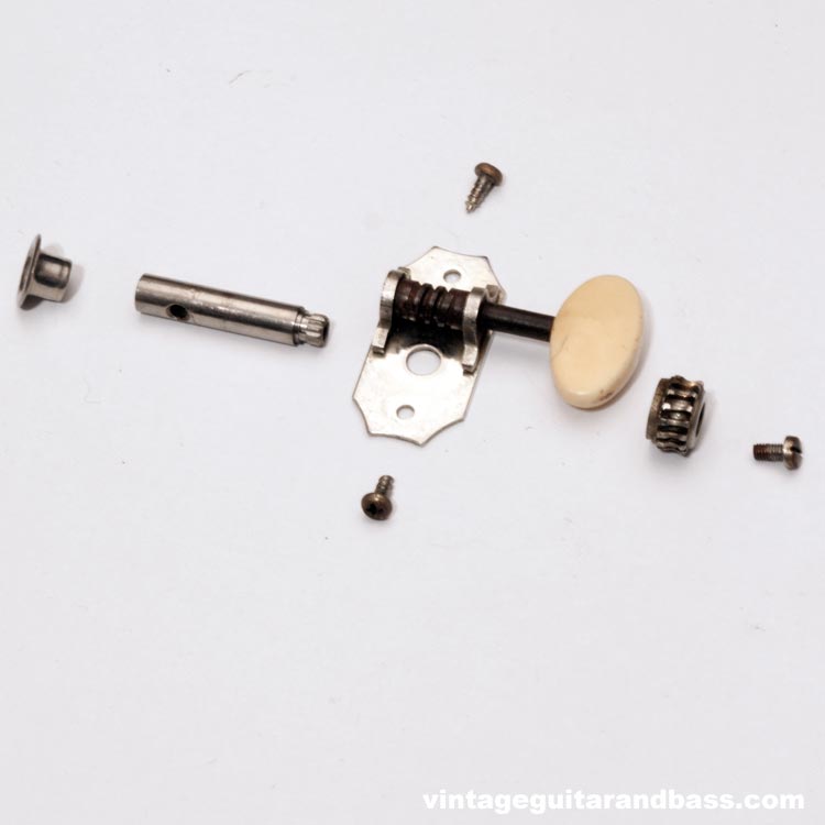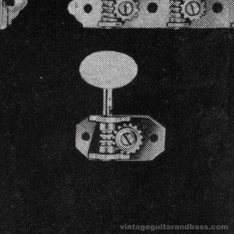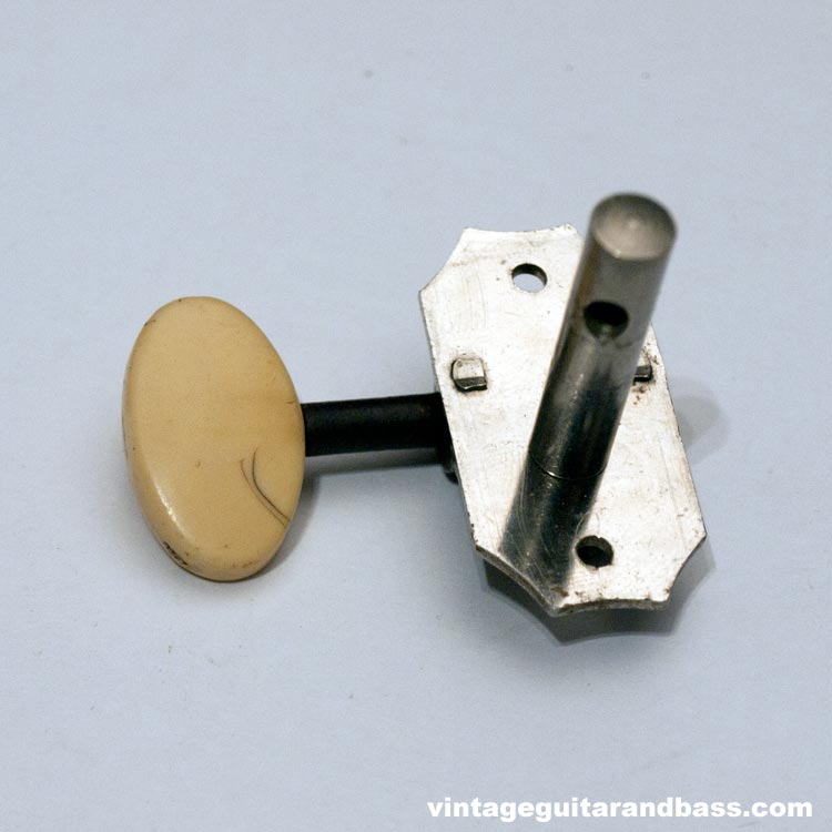 Vox part number 09-301-0. This open gear tuning key was fitted to a number of early Vox solid body models: most typically the Clubman and Bassmaster basses, but also early versions of the Ace, Clubman guitar, Soloist, Duotone - guitars with the early elongated headstock, rather than the later Fender-style.