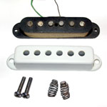 The Vox V2 single coil pickup was fitted to numerous British-built Vox guitar models, and is easily distinguished from the Vox V1 (which it largely replaced, at least in higher end models), in having a plastic cover with revealed (but not adjustable) polepieces. This pickup was always scratchplate mounted.