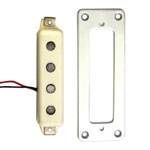 Part number 09-2405-0. This single coil pickup was used on at least one early Italian-made (Eko) bass; the solid-body Vox Violin bass (V232). Although very similar to the pickup above (09-1526-0), it actually has slightly smaller dimensions.