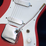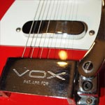 The Vox Standard Tremolo, part 09-903-0, was produced for mid-sixties entry level UK-built solid bodies with flat fretboards. The de luxe (above) was the correct tremolo for guitars with radiused boards. It was fitted to the Dominator, Apache, and later versions of the Shadow, and Duotone, from 1963 onwards, and remained the correct part for these models right until the end of UK Vox guitar production in 1967.
