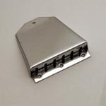 The wedge tailpiece (our name) was fitted to the Clubman and Stroller from 1966, replacing the earlier pressed metal 'hump' tailpiece. It was only fitted to these UK-built (JMI) guitars, and was used in conjunction with a floating rosewood or aluminium bridge.